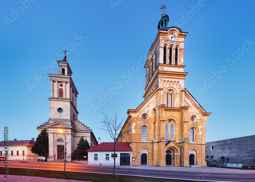 © TTstudio, Naklejka premium Slovakia - Modra city with church at night