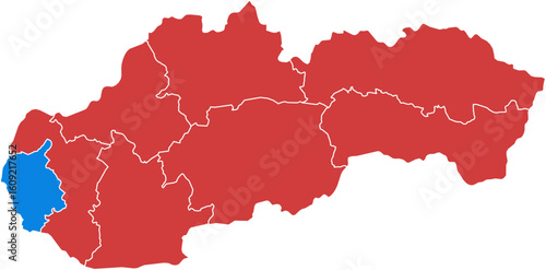 Fototapeta premium Slovakia slovakia. Slovakia map with trnava region highlighted isolated on white background.