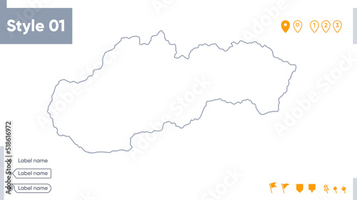 © Александр Филинков, Obraz premium Slovakia - stroke map isolated on white background. Outline map. Vector map
