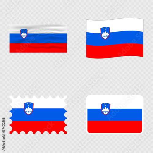 © Ruslan, Fototapeta premium Slovenia national flag in four different styles.