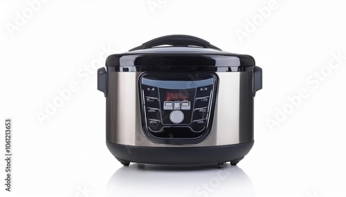 Fototapeta premium Slow Cooker on White Background Isolated. Full Shot of Kitchen Utensils.