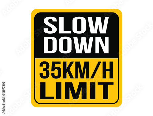 Fototapeta premium Slow down 35km/h, maximum speed allowed. Orange speed warning sign.
