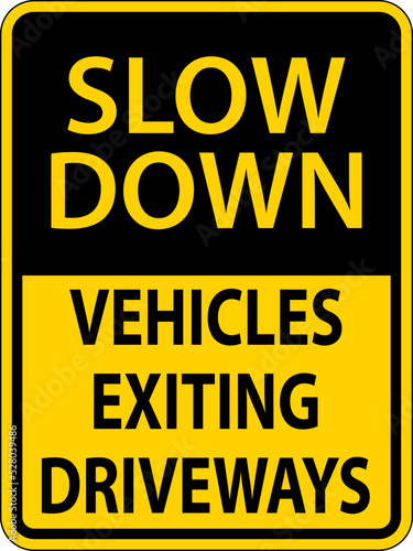Fototapeta premium Slow Down Vehicles Exiting Driveways Sign On White Background