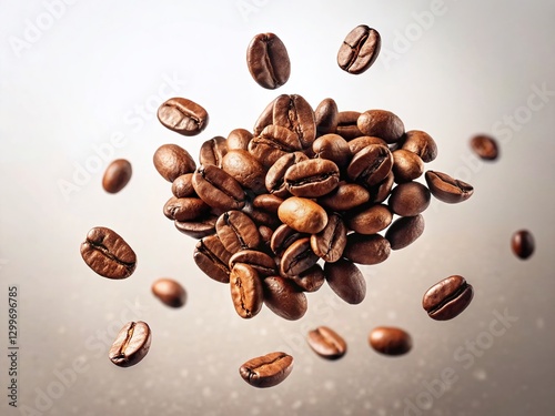 Obraz premium Slow Motion Falling Coffee Beans, White Background, Studio Shot, Food Photography, Product Image