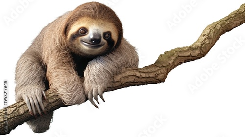 Fototapeta premium Slow-moving rainforest sloth resting on a sturdy tree branch with calm...