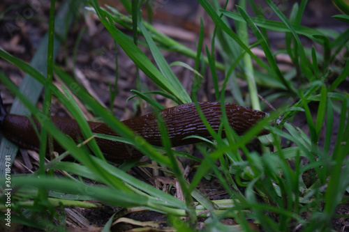© Вася Васечкин, Fototapeta premium slug is going home in autumn forest after rain