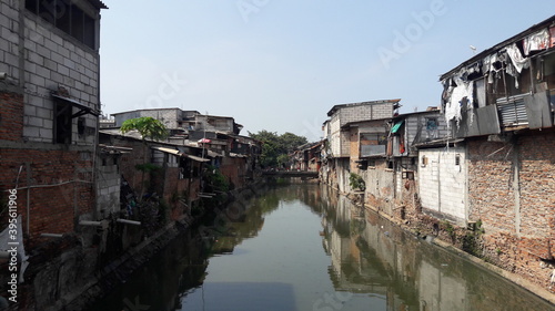 © infiksjurnal, Fototapeta premium Slum area located on the banks of a dirty river