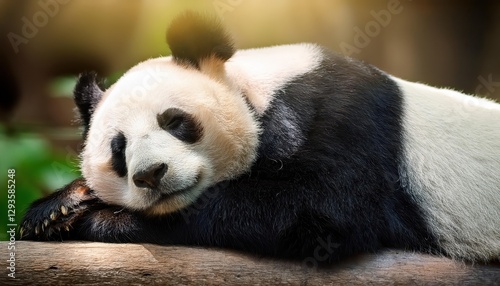 Fototapeta premium Slumbering Giant Panda in Chinese Bamboo Forest, Serene Peacefulness Envelops...