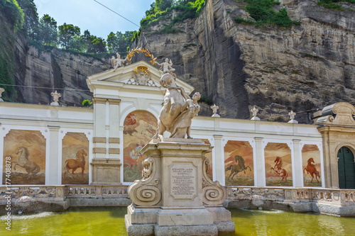 © RokaB, Obraz premium Słynna statua „Łaźnia koni” w centrum Salzburga