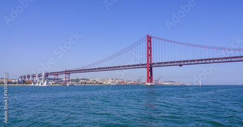 Fototapeta premium Słynny most 25 kwietnia nad rzeką Tajo w Lizbonie, znany również jako most Salazar - Lizbona - Portugalia - 17 czerwca 2017 r.