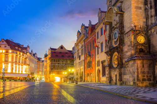 © Taiga, Naklejka premium Słynny praski zegar Orloj i centrum starego miasta w nocy