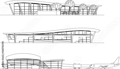 Obraz premium small airport illustration vector sketch design with passenger plane