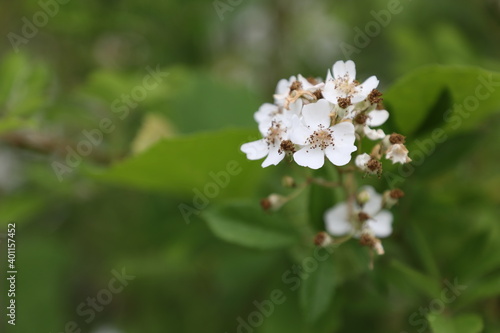 Fototapeta premium Small and tiny white flowers with green leaves and foliage background