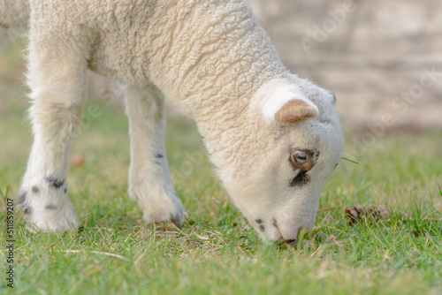 © bios48, Obraz premium Small and young lamb in pasture in spring.