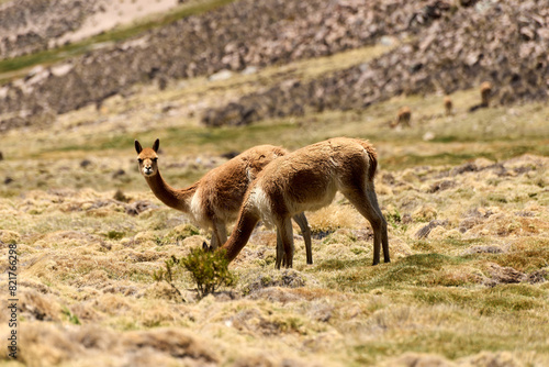 © Hernan, Fototapeta premium Small Andean llamas in the Andes of Peru
