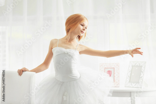 Fototapeta premium Small ballerina dancer at home