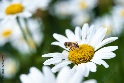 © blanke1973, Fototapeta premium small bee on a yellow white flower, close up