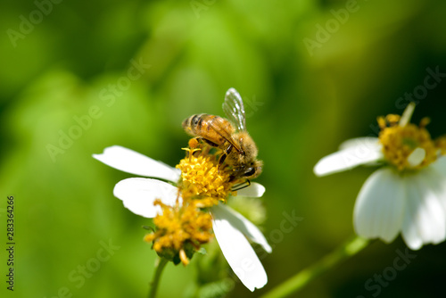 © Khanh, Obraz premium small bee on weeds flower, photo by macro photography