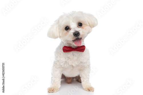 © Viorel Sima, Obraz premium small bichon dog wearing a red bowtie