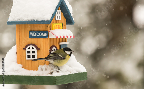 © Susannahietanen, Fototapeta premium Small bird by a feeding house
