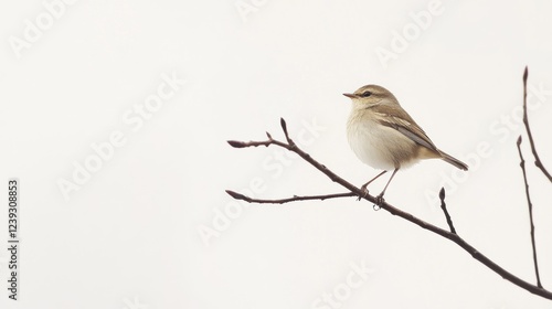 © SlashStd, Fototapeta premium Small bird perched on a branch, winter sky background, nature photography, website