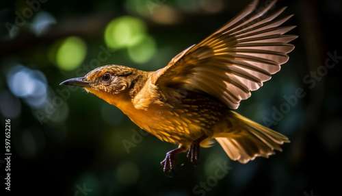 Fototapeta premium Small bird perching on branch spread wings generated by AI