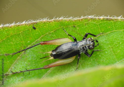 © Webby, Fototapeta premium Small black cricket on the leaf
