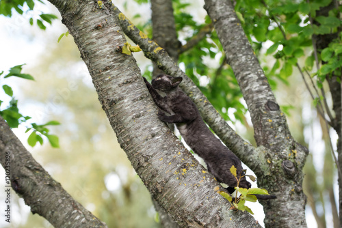 © otsphoto, Obraz premium small black kitten climbing a tree