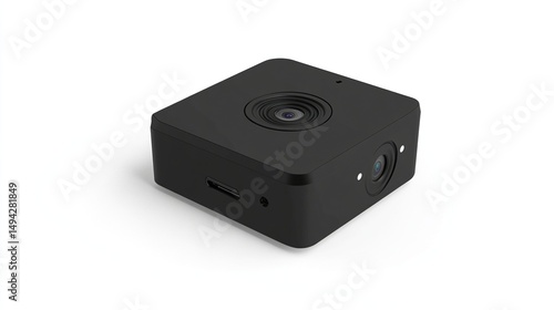 Fototapeta premium Small, black, square, digital camera, with two lenses