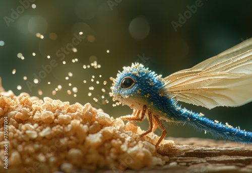 © Amir, Fototapeta premium Small Blue and Yellow Insect on Wood