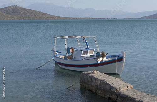 Fototapeta premium Small boat on the Merabello Gulf at Elounda, northern Crete, Greece,