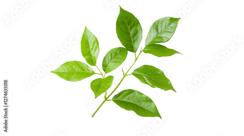 © Michael, Obraz premium Small branch with green leaves growing on transparent background, perfect graphic resource for your projects