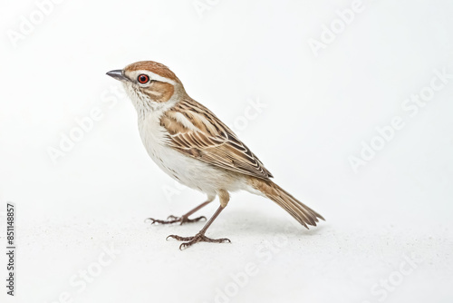 Fototapeta premium Small Brown Bird with Red Eyes on White Background