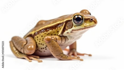 © Anulak, Fototapeta premium Small brown frog isolated on pure white backdrop , cute, texture, white background