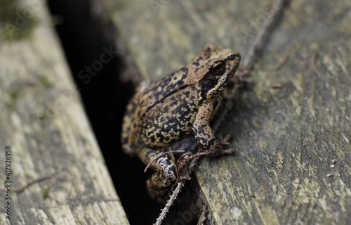 © Fodor Benedek, Naklejka premium Small brown frog on wood
