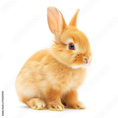© LUPACO IMAGES, Obraz premium Small Brown Rabbit Sitting on White Floor