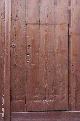 Fototapeta premium small brown wooden door cut out of much larger one