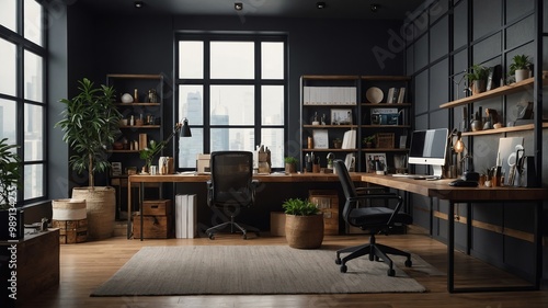 © Arceli, Fototapeta premium Small business office with product packaging background