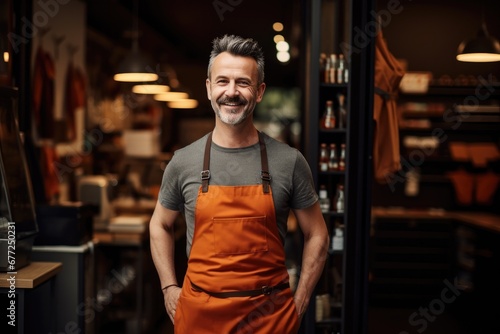 © ChaoticMind, Fototapeta premium Small Business Pride: Portrait of a Dedicated Entrepreneur in Front of Their Unique Shop