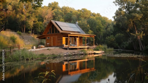 © Prostock-studio, Obraz premium Small Cabin on Lake Shore