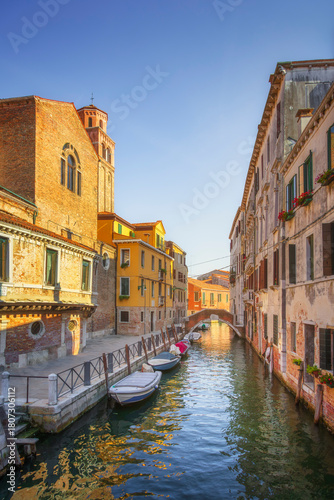 © stevanzz, Fototapeta premium Small Canal, Bridge and Venetian Buildings in Venice, Italy
