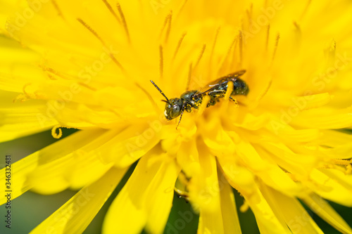 © Erik, Fototapeta premium Small Carpenter Bee on Dandelion Flower