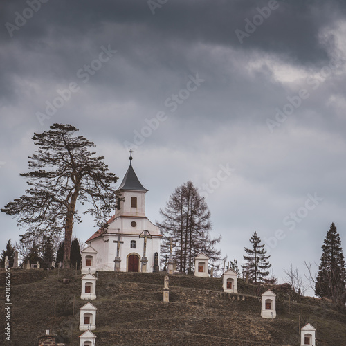 © Csák István, Fototapeta premium Small chapel with stormy clouds