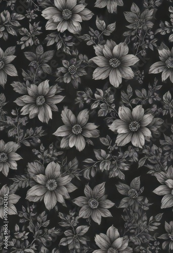 Obraz premium Small charcoal floral repeat pattern Perfect for home decor and textiles ,...