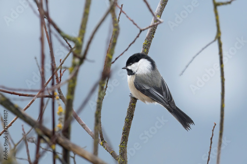 Fototapeta premium Small chickadee perched on a twig.