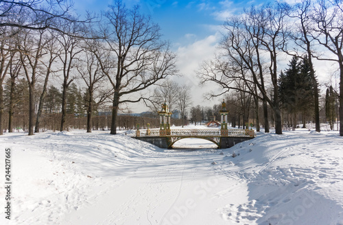 © olga_v, Fototapeta premium Small Chinese bridge winter day in a snowy Alexander park in Pushkin (Tsarskoye Selo), near Saint Petersburg , Russia..