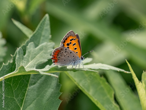 Obraz premium small copper butterfly resting on a leaf 2