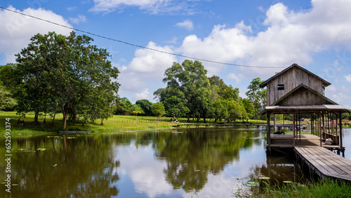 © Reza, Fototapeta premium Small cottage house near the lake and park