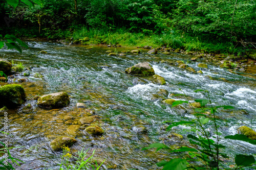 © Martins Vanags, Fototapeta premium small country river stream in summer green forest