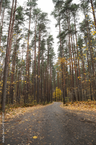 © Artūrs Stiebriņš, Obraz premium Small countryside asphalt road through forest in autumn.